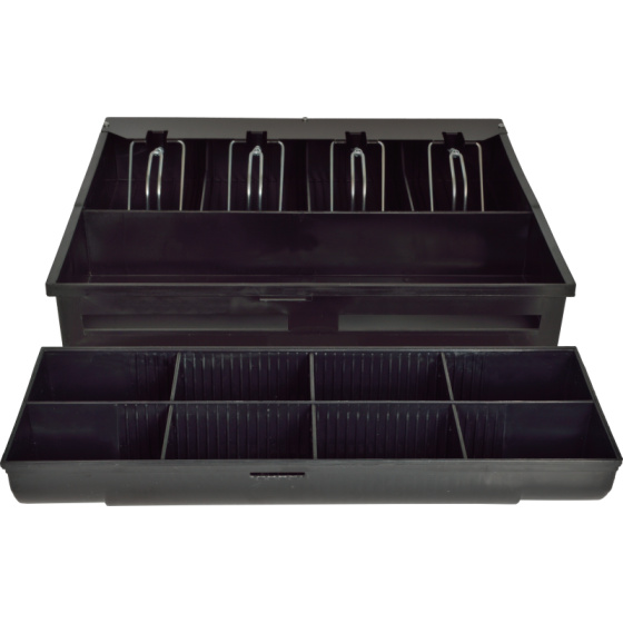 Náhradní plastový pořadač na peníze pro zásuvku S-410 - přihrádky 4 x bankovky, 8 x mince.