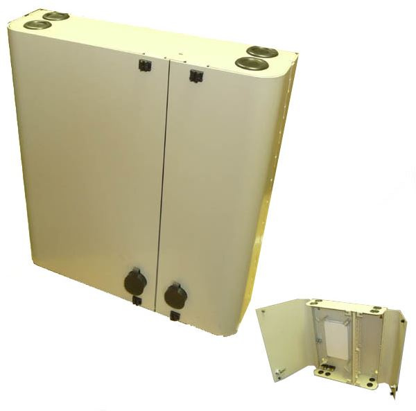 Optický plechový rozvaděč, dvoukřídlé dveře, 2x zámek.Konstrukce: pro max. 24 ks SC simplex spojek.B