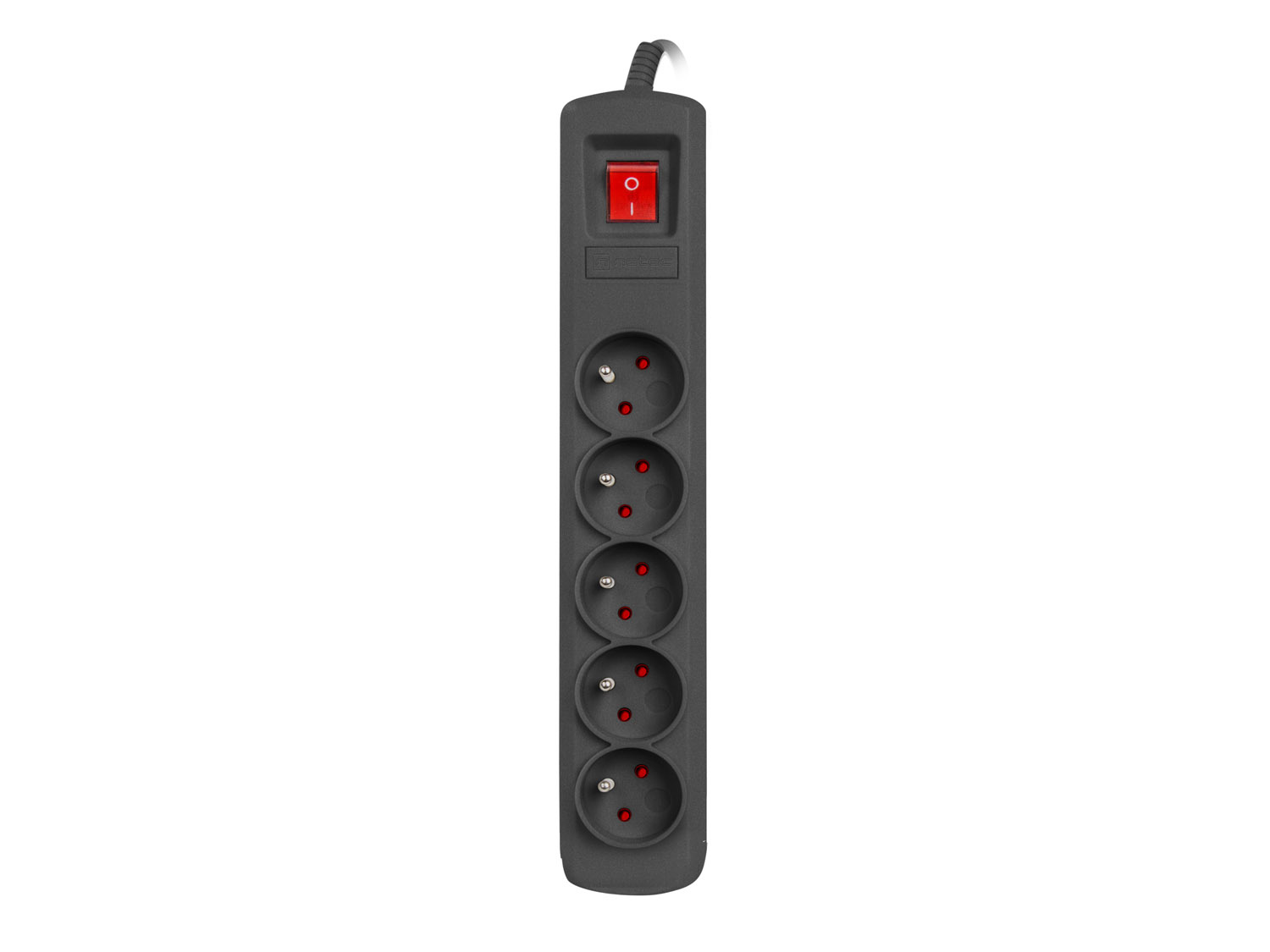 Popis Natec prepäťová ochrana BERCY 400, 1,5m, 5 zásuviek, vypínač, čierna
