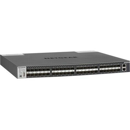 XSM4348FS-100NES - Stohovatelný Managed Switch se 48x SFP+ 10Gb porty FUNKCE - 48portový 10GBASE-X (SFP +) a 2portový 10GBASE-T (RJ45) (sdílený) - Porty Mini-USB a RJ45 RS232 a úložný port USB- Neblokující struktura 960 Gb/s napříč 48 porty - L3 funkce a stohování non-stop forwarding (NSF) - Nízká akustika (42,4 dB při 25 °C / 77 °F) TECHNICKÉ VLASTNOSTI Form factor: 1U rack Přepínací kapacita: 960 Gbps PSU: Modulární dvou pozicový; včetně 1 napájecího zdroje: APS250W Ventilátory: Pevné; 42,04dB Management: Ethernet: Out-of-band 1G port; Console: RJ45 RS232, Mini-USB; Úložiště: USB MAC / ARP - NDP: 128K MAC; 8K ARP / NDP Propustnost: 714 Mpps Paketová vyrovnávací paměť: 56 Mb CPU: 800 Mhz, 1 GB RAM, 256 MB Flash VLAN: 4K VLAN 10G porty: 48 MTBF: 75 let při 25 °C okolní teploty PTPv2: Ne Hmotnost: 5,86 kg Spotřeba energie: 152,4 W OBSAH BALENÍ - 1x switch M4300-48XF - 1x napájecí zdroj APS250W - 2x krátké držáky a šrouby pro montáž do racku