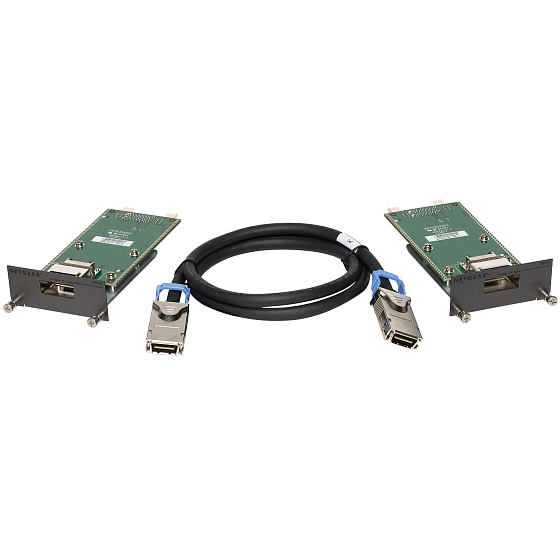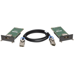 Stacking kit for M5300 series rear I/O bays: AX742 Stacking Kit is cost-effective preferred method for local Virtual Chassis Stacking using both rear I/O bays. When some switches are distant, affordable SFP+ (AX743) and 10GBase-T (AX745) I/O modules allow for fiber or copper distant connections, still leveraging rear bays zero-touch stacking functionality.