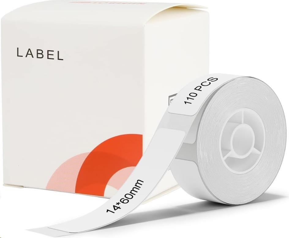 Nalepovacie štítky pre štítkovače a tlačiarne Niimbot kompatibilné s modelmi Niimbot D11 a D110. Balenie obsahuje 1x rolu bielych samolepiacich štítkov Niimbot o rozmere 14x60mm - 110ks. Rolka je určená pre priamu termálnu tlač pomocou kompatibilnej tlačiarne Niimbot. Štítky majú lepiacu vrstvu, ktorá účinne priľne na rôzne materiály. Perforácia medzi jednotlivými štítkami uľahčuje ich rozdelenie po tlači. Etikety značky NIIMBOT sú vyrobené z vysoko odolných materiálov a po tlači sú laminované, čo zaisťuje ich dlhú životnosť. Sú odolné voči mrazu, oleju, vode a majú zvýšenú odolnosť proti slnečnému žiareniu. Vďaka tomu môžete mať istotu, že vaše etikety zostanú čitateľné a pevne prichytené dlhú dobu..