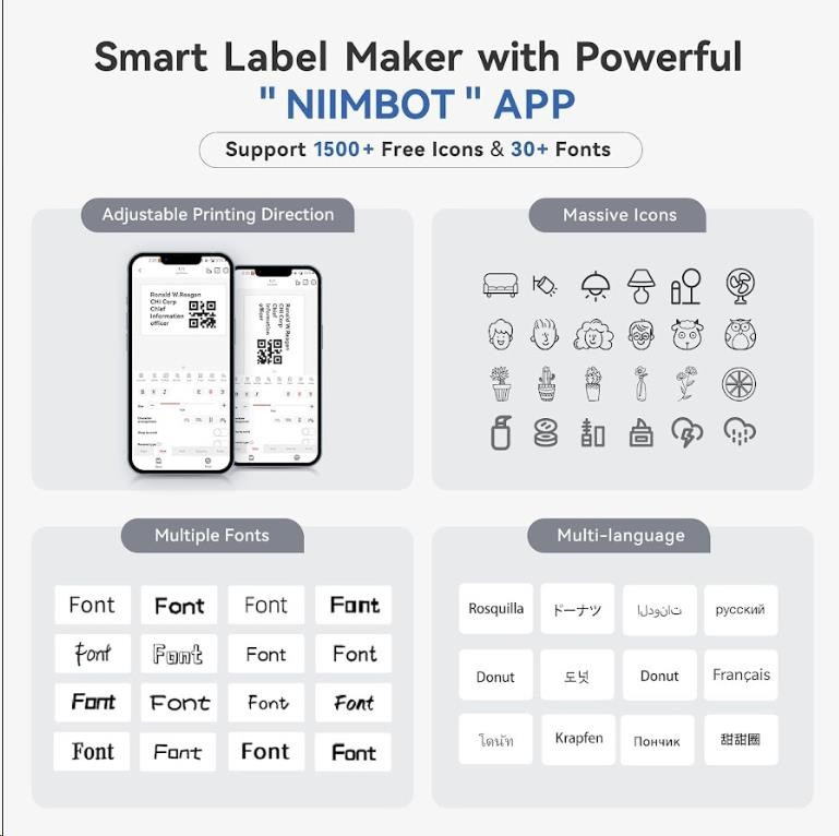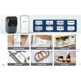 Pri navrhovaní štítku môžete použiť rôzne písma, tvary, ikony, veľkosti a formáty, aby ste si vytlačili etikety alebo štítky podľa svojej predstavy. Môžete importovať fotografie z vášho telefónu alebo obrázky z internetu, aby bol dizajn jedinečný. Bezplatná aplikácia pre iOS alebo Android ponúka viac ako 1500 ikonk, viac ako 100 rámikov, 19 fontov písma a umožňuje tiež tlač QR kódov. Môžete si vybrať z rôznych štýlov písma, veľkostí a formátov, aby ste si vytlačili etikety alebo štítky presne podľa svojej predstavy. Tlačiareň automaticky rozpozná vložené štítky a aplikácia prispôsobí rozmery pre tlač.