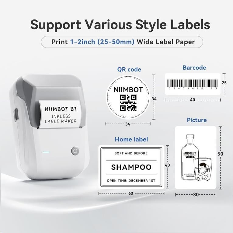 NIIMBOT B1 je tlačiareň štítkov, ktorá kombinuje výkon, pohodlie a kvalitu. S jej jednoduchou obsluhou a vynikajúcimi funkciami vás prekvapí, ako rýchlo a ľahko môžete vytvárať profesionálne štítky.