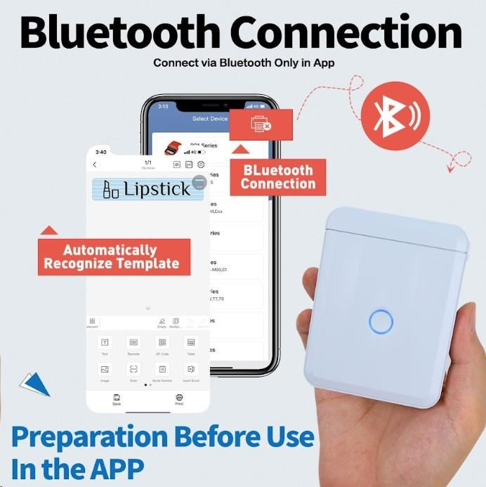 Pri navrhovaní štítku môžete použiť rôzne písma, tvary, ikony, veľkosti a formáty, aby ste si vytlačili etikety alebo štítky podľa svojej predstavy. Môžete importovať fotografie z vášho telefónu alebo obrázky z internetu, aby bol dizajn unikátnejší. Bezplatná aplikácia pre iOS alebo Android ponúka viac ako 1500 ikôn, viac ako 100 rámčekov, 19 fontov písma a umožňuje tiež tlač QR kódov. Môžete si vybrať z rôznych štýlov písma, veľkostí a formátov, aby ste si vytlačili etikety alebo štítky presne podľa svojich predstáv. Tlačiareň automaticky rozozná vložené etikety a aplikácia prispôsobí rozmery pre tlač.