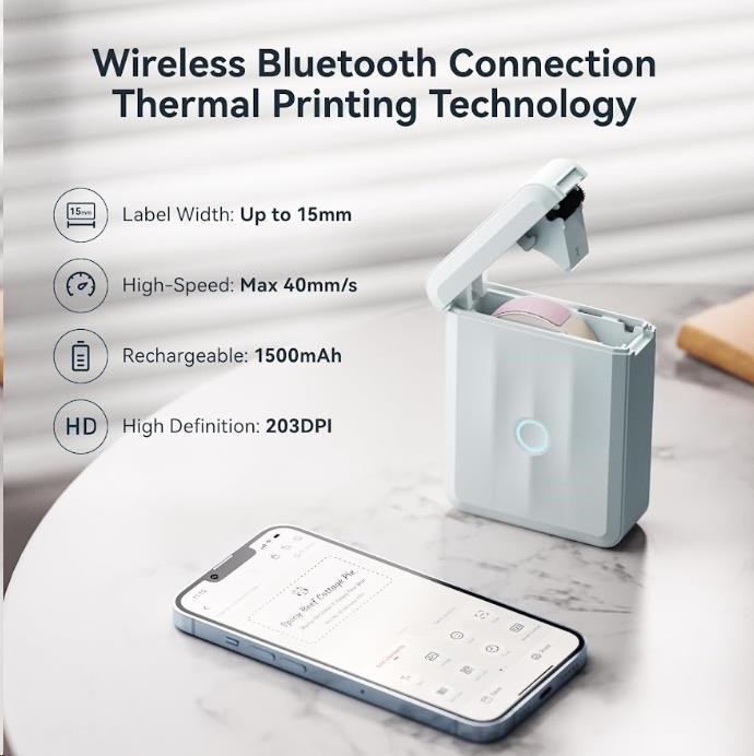 Ponúka širokú škálu možností tlače. Môžete tlačiť vertikálne aj horizontálne, vytvárať čiarové kódy a sériové čísla, čo vám umožňuje prispôsobiť etikety presne podľa svojich potrieb. S rozlíšením 203 dpi, maximálnou šírkou tlače 12 mm a kompatibilitou s 12-15mm štítkami, si vyrobíte polepky a etikety v najvyššej kvalite. To všetko v minimálnych rozmeroch. Tlačiareň si môžete zobrať kamkoľvek a ani o nej nebudete vedieť. Tlači