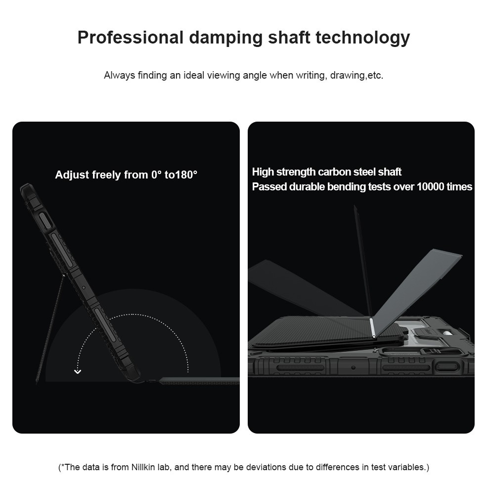 Nillkin Bumper Link Keyboard Case je víceúčelový ochranný kryt tabletu s odnímatelnou podsvícenou klávesnicí, slotem pro Apple Pencil a plynule nastavitelným úhlem tabletu. Chcete svůj tablet využívat jako mobilní kancelář, jako náhradu za těžký notebook, nebo vás prostě jen tablet baví, tak přesně pro vás je zde víceúčelový ochranný kryt Nillkin. Kryt vám nabídne špičkově zpracovanou odnímatelnou bezdrátovou klávesnici s nízkým zdvihem, tichými a odolnými spínači a precizní profilací kláves pro to nejpohodlnější psaní. Součástí odnímatelné klávesnice je také praktická opěrka pro tablet s plynulým nastavením úhlu. Klávesnice je také vybavena podsvícením, u kterého máte možnost si zvolit barvu a úroveň podsvícení. Na výběr je 7 různých barev a 4 úrovně podsvícení. Na kryt se uchytí pomocí magnetu, který je integrovaný na zadní straně krytu. Díky magnetu můžete kryt nastavit jak na šířku, tak na výšku. Kryt má integrovaný slot s nabíjením přímo pro Apple Pencil. Můžete ho tak mít vždy s sebou a co je hlavní, bude vždy plně nabitý. O nabíjení Apple Pencil a napájení bezdrátové klávesnice se stará baterie s kapacitou 500mAh. V nepřetržitém provozu (s vypnutým podsvícením) vám klávesnice vydrží až 100 hodin. Se zapnutým podsvícením vydrží až 14 hodin. Kryt se skládá z TPU + PU materiálu, který chrání váš tablet před poškozením. Navíc je opatřen zesílenými rohy a posuvným krytem fotoaparátu pro ještě větší ochranu.