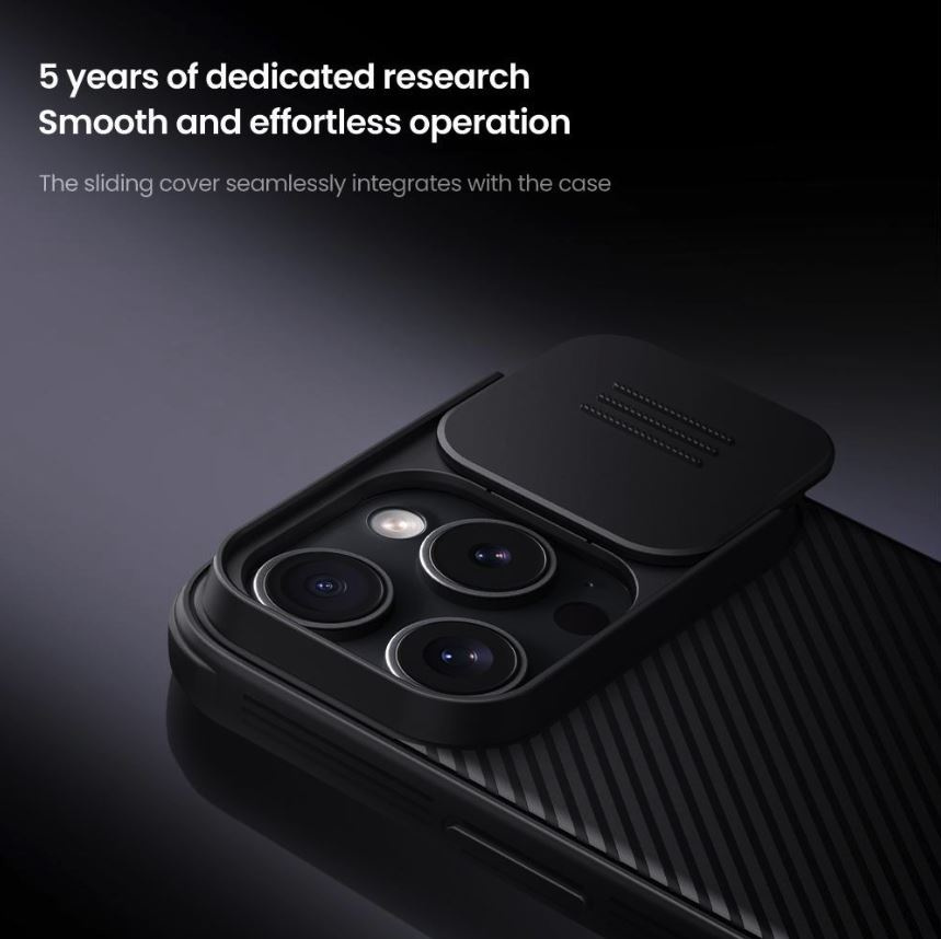 Nillkin CamShield PRO je unikátní kryt s posuvným krytem čočky fotoaparátu. Navíc je oproti klasickému CamShield unikátní v tom, že se skládá ze dvou materiálů. Záda krytu jsou vyrobena z pevného a odolného plastu a to včetně krytu fotoaparátu. Rámeček krytu je vyroben z měkčeného TPU plastu, pro nejlepší ochranu okrajů a rohů telefonu. Oba dva materiály jsou vysoce odolné proti opotřebení, ale také proti otiskům prstů a mastnotě. Přesné výřezy na ovládací prvky a potřebné konektory zajišťují pohodlnou obsluhu telefonu.