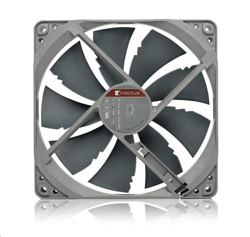 ventilátor, rozmery 140x140x25mm, 12V, hluk 19.6dB, prietok 110.3m3/h, 350 až 1200ot./min, 4pin PWM konektor, samostatne stabilizujúce olejové ložisko