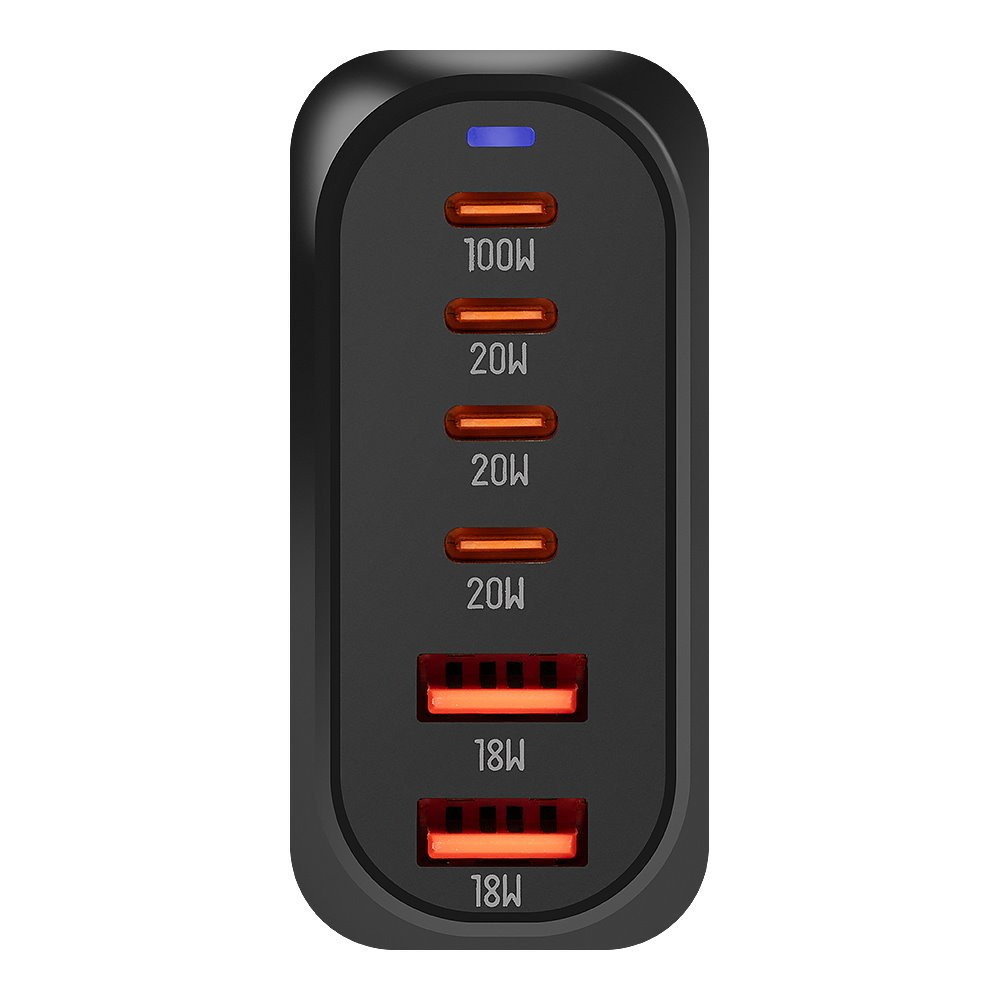 Síla 100 W, která zvládne všechno, co potřebujete. OBAL:ME Terminal je stolní nabíječka s technologií GaN3, která přináší výjimečný výkon, kompaktní rozměry a vysokou účinnost. Kombinuje čtyři porty USB-C a dva porty USB-A, čímž umožňuje nabíjet až šest zařízení současně s celkovým výkonem až 100 W. *Díky pokročilé správě napájení automaticky rozpozná připojená zařízení a přerozdělí výkon podle jejich potřeb. *Pokud připojíte pouze jeden kabel do horního portu USB-C1, Terminal poskytne plný výkon 100 W – ideální pro rychlé nabíjení notebooků jako MacBook, Ultrabook nebo iPad Pro. *Jakmile se připojí další zařízení, výkon se dynamicky rozdělí mezi všechny porty, aby bylo nabíjení bezpečné, stabilní a šetrné ke každému zařízení. *OBAL:ME Terminal není jen výkonný, ale také praktický. Díky kompaktnímu provedení s prodlouženým napájecím kabelem ho snadno umístíte na stůl i pod něj – přesně tam, kde ho potřebujete. *Odnímatelný síťový kabel usnadňuje přenášení i uskladnění při cestování. Součástí balení je také praktický stolní podstavec, který umožňuje nabíječku pohodlně umístit na pracovní plochu a udržet ji pevně na místě. *Matně černý povrch a čisté linie ladí s moderní elektronikou, zatímco decentní LED indikátor zůstává trvale rozsvícený při připojení k zásuvce a informuje o připravenosti nabíječky, aniž by rušil okolní prostředí. *Integrované bezpečnostní obvody chrání zařízení před přepětím, přehřátím a zkratem, takže můžete bez obav nabíjet i ta nejcitlivější zařízení. *GaN3 technologie zároveň zajišťuje stabilní výkon bez přehřívání i při dlouhodobém používání, což prodlužuje životnost nabíječky a zvyšuje energetickou efektivitu. *Ať už pracujete z kanceláře nebo domova, OBAL:ME Terminal vám poskytne jedno spolehlivé místo pro napájení všeho, co potřebujete. *Součástí balení: nabíječka OBAL:ME Terminal, odnímatelný napájecí kabel, stolní podstavec a návod k použití. Klíčové vlastnosti *Celkový výkon až 100 W – ideální pro nabíjení notebooků, tabletů i telefonů *Horní USB-C1 až 100 W (při samostatném použití), USB-C2/USB-C3/USB-C4 až 20 W na port *USB-A porty až 18 W na port *Inteligentní rozdělení výkonu mezi všechny porty (sdíleně max. 100 W) *Technologie GaN3 – vyšší účinnost, nižší teplota, menší rozměry *Odnímatelný síťový kabel pro snadné přenášení *Stolní podstavec pro stabilní umístění nabíječky *Kompaktní provedení s prodlouženým napájecím kabelem *Vícenásobná ochrana proti přepětí, přehřátí a zkratu *LED indikátor svítí při připojení do sítě – připraven k použití Technická specifikace *Vstup: 100–240 V ~ 50/60 Hz, 2.5 A max *Celkový výkon: 100 W max *Porty: 4× USB-C + 2× USB-A *USB-C1: 5 V = 3 A / 9 V = 3 A / 12 V = 3 A / 15 V = 3 A / 20 V = 5 A (až 100 W při samostatném použití) *USB-C2 / USB-C3 / USB-C4: až 20 W na port (podle konfigurace) *USB-A1 / USB-A2: až 18 W na port (podle konfigurace) *Sdílený výkon (více portů): Dynamické rozdělení, celkově max 100 W *Materiál: PC + ABS, matný povrch *Rozměry: 85 × 85 × 30 mm