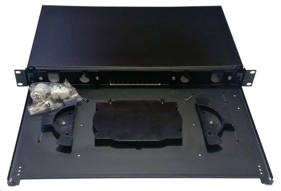 Optická vana výsuvná 1U, modulární bez čela s kazetou na 24 svarů, černá