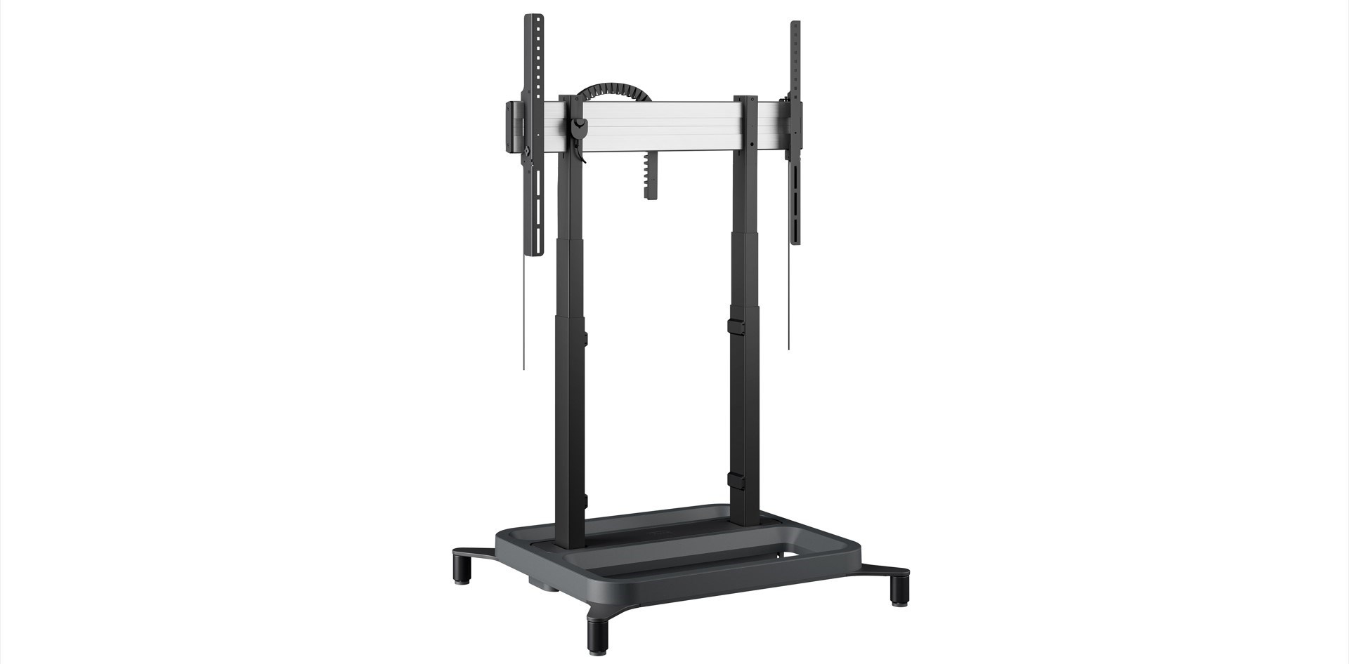 Podlahový stojan RISE 5108 s motorovým výťahom je vhodný pre displeje s uhlopriečkou až 86" a maximálnou hmotnosťou 120 kg. Zdvihák zdvíha displej plynulo, rýchlo a bezpečne rýchlosťou 80 mm/s vďaka technológii QuickRise™. Vďaka rozsahu zdvihu 980 mm je zdvihák vhodný pre veľmi nízke aj vysoké polohy.