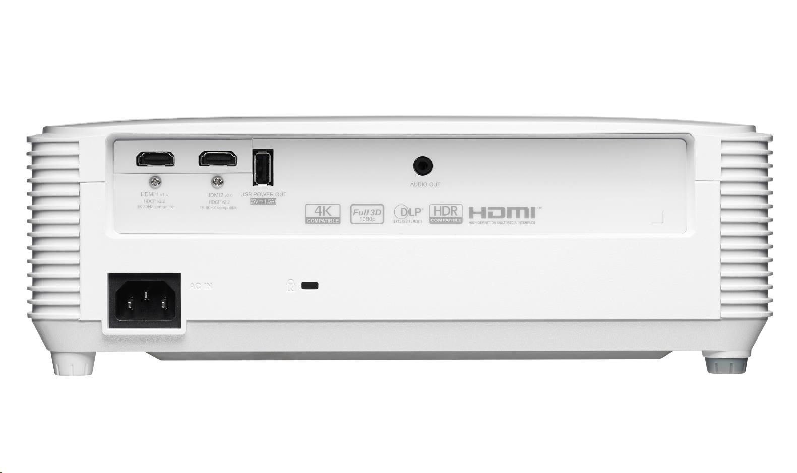 Skutočné rozlíšenie projektora:HD 1080 (1920 x 1080); Technológia projektora:DLP; Kontrast (hodnota : 1):22 000; Svietivosť (v ANSI lumenoch):4000; Rozhranie:HDMI, USB, 3.5mm Jack; Uchytenie:Na stôl, Na strop; Výbava:HDR, Korekce lichoběžníku manuální, Zoom, Ďiaľkové ovládanie, Reproduktory, Zoom, 3D.prečítajte si viac