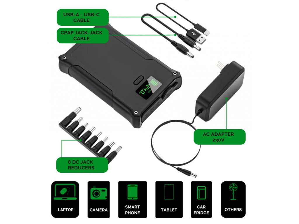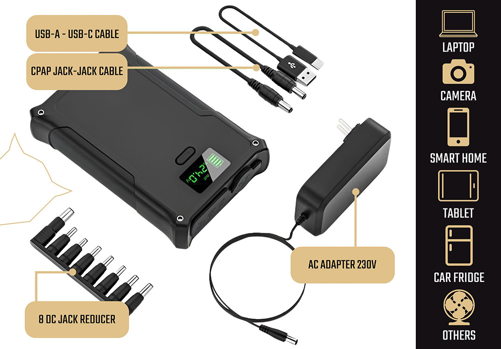 S kapacitou 38400 mAh (138Wh) a maximálním výkonem až 160 W spolehlivě napájí širokou škálu zařízení – od mobilních telefonů přes notebooky až po 12V spotřebiče. Nabízí výstupy USB-A, USB-C, DC-JACK pro notebooky a cigaretovou zásuvku.
