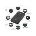 Pro pohodlné a univerzální použití je powerbanka vybavena širokou škálou výstupních konektorů, díky kterým snadno nabijete různé typy zařízení – od mobilních telefonů až po běžnou elektroniku.