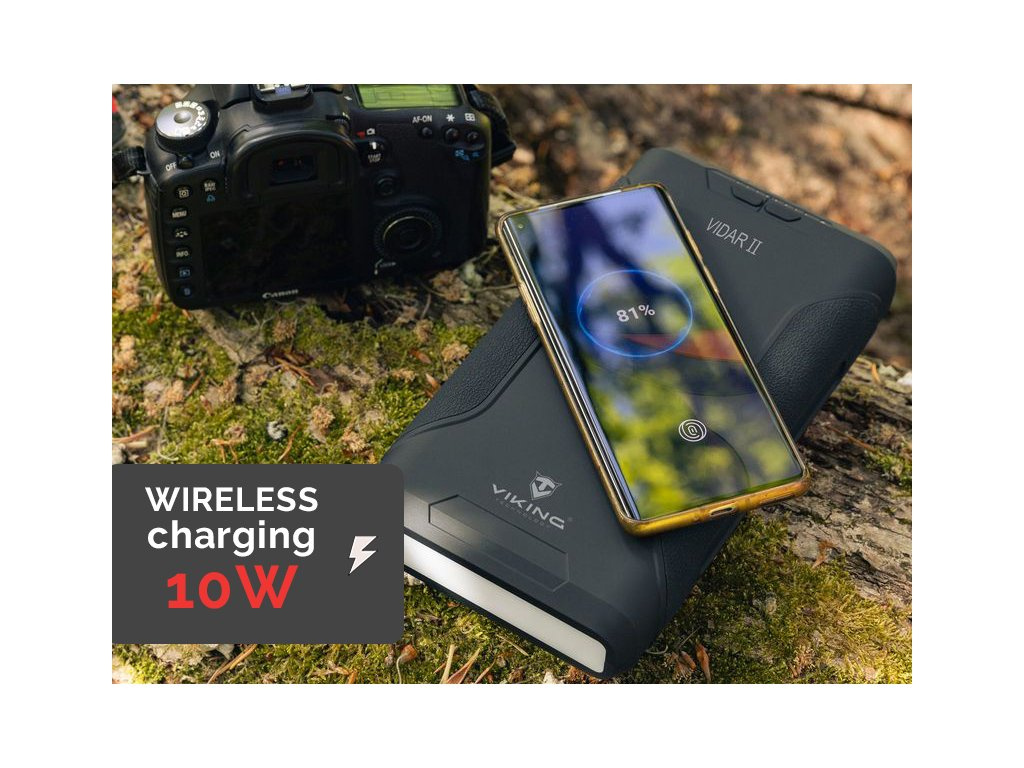 Outdoorová powerbanka Viking VIDAR II • Kapacita: 72000mAh/266.4Wh • Maximální výkon: 180W • Zabudované LED světlo • Široká škála vstupů a výstupů (USB-A, USB-C, Cigaretová zásuvka, DC-jack, WIRELESS Qi) • Možnost solárního napájení • Funkce Pass-Through • Odolnost IP65