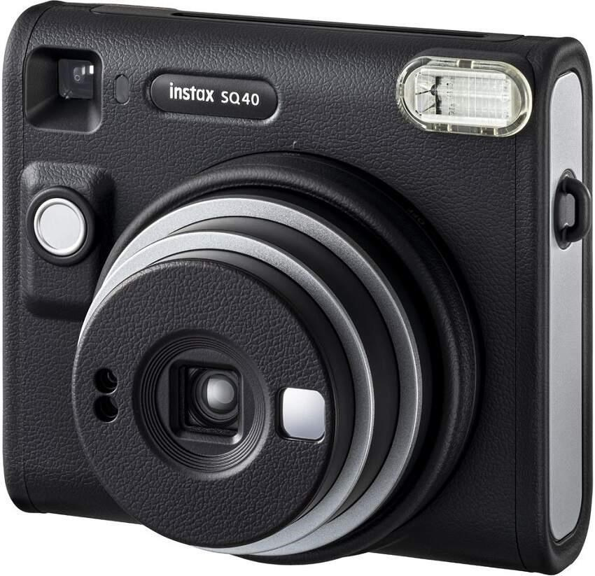 Fujifilm Instax SQ40 v elegantnom čiernom prevedení s jednoduchým ovládaním disponuje malým integrovaným zrkadlom pre selfie fotografie a funkciou automatickej expozície pre krásne osvetlené fotky.