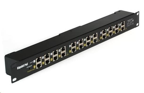 POE injektor aktivní/pasivní - 12x 1 Gb/s, stíněný panel, 802.3af/at