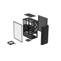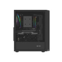 Futuristický geometrický tvar se bude líbit jak hardcore hráčům, tak i těm, kteří dávají přednost decentnějšímu designu. Levý boční panel z tvrzeného skla je příležitostí k odhalení vnitřku skříně a výkonných komponent ukrytých uvnitř - také s RGB, zejména proto, že instalovaný ventilátor je předsvícený.