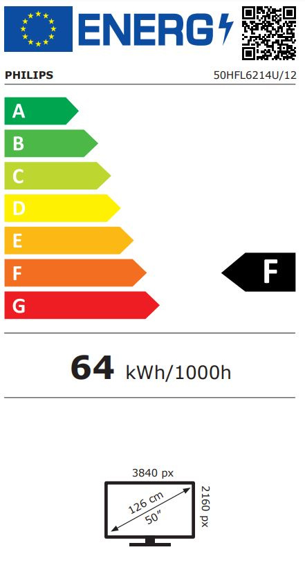 Napájení: 220–240 V stř.; 50–60 Hz Spotřeba [W]: 64 W Třída energetické náročnosti: F Funkce úspory energie: Režim Eco Spotřeba energie v pohotovostním režimu [W]: < 0,3 W
