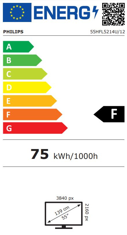 Napájení: 220–240 V stř.; 50–60 Hz Spotřeba [W]: 75 W Třída energetické náročnosti: F Funkce úspory energie: Režim Eco Spotřeba energie v pohotovostním režimu [W]: < 0,3 W