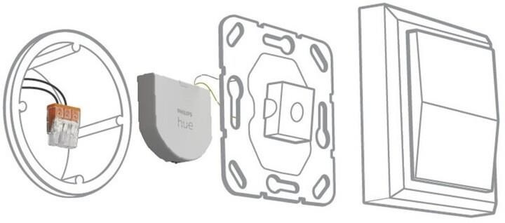 Modul nástenného vypínača Philips Hue vyžaduje Philips Hue Bridge (predáva sa samostatne). Hue Bridge vám tiež umožní pridať do celej domácnosti až 50 svetiel a príslušenstva, vytvárať časovače a rutiny a ovládať svetlá odkiaľkoľvek pomocou aplikácie Hue – či už ste vo vnútri alebo vonku.