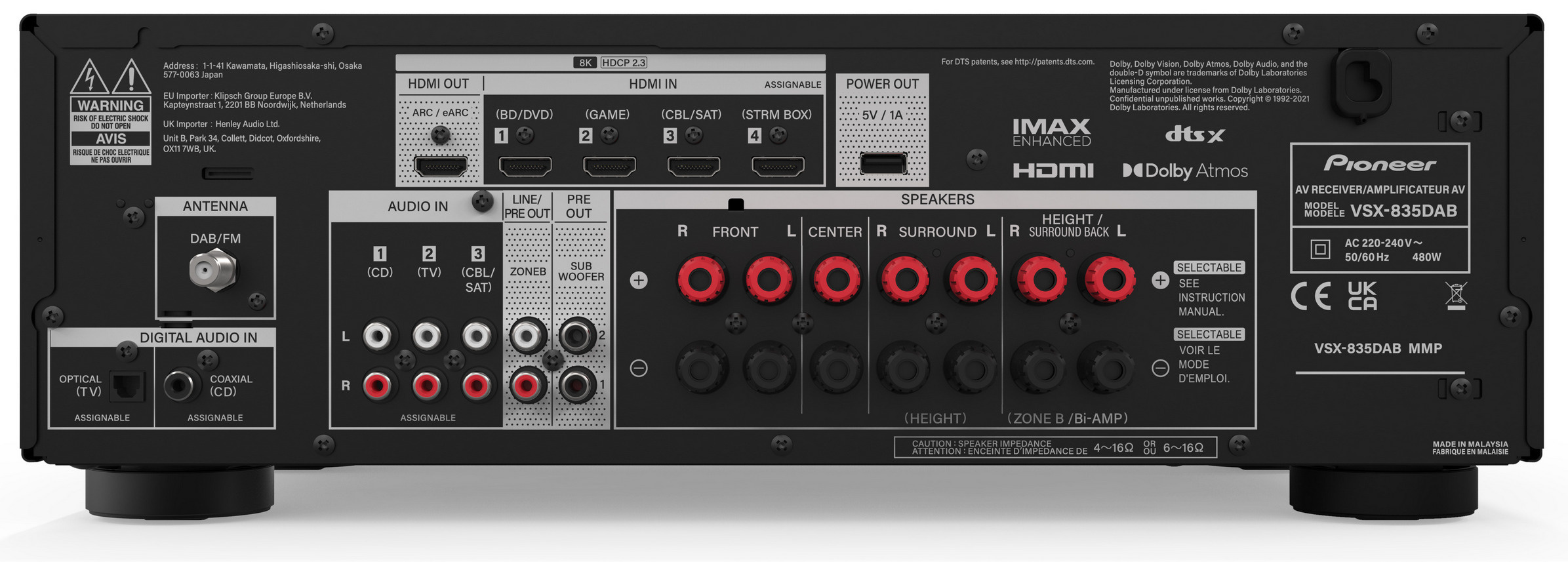 Popis Pioneer VSX-835D-B AV prijímač 7.2, 7x135W, Dolby Atmos, DTS-X čierny