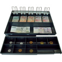 Dostatečně široký pořadač pro pohodlné umístění 5 druhů bankovek vedle sebe. Obsahuje vyjímatelný mincovník a pořadač bankovek s libovolně nastavitelnými přihrádkami. Pořadač disponuje kovovými držáky bankovek a je možné jej doplnit o uzamykatelný kryt EPP12050.