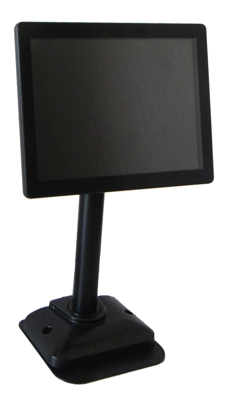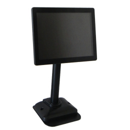 Plastový stojan pro malé monitory s možností přišroubování k desce (včetně 10 cm prodlužovacího dílu). Lze použít např. pro zákaznický displej k pokladně. VESA 75x75