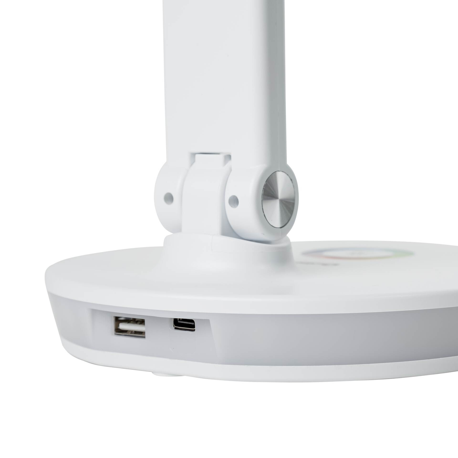 Zajímavým designovým prvkem je RGB podsvícení základny, které umožňuje nastavit barevnou atmosféru podle nálady nebo denní doby. Můžete nechat svítit jen základnu lampičky jemným světlem volitelné barvy např. během večerních hodin, kdy nepotřebujete intenzivní osvětlení. Integrovaný USB port navíc umožňuje pohodlné nabíjení mobilního telefonu nebo tabletu, aniž by bylo nutné hledat volnou zásuvku.
