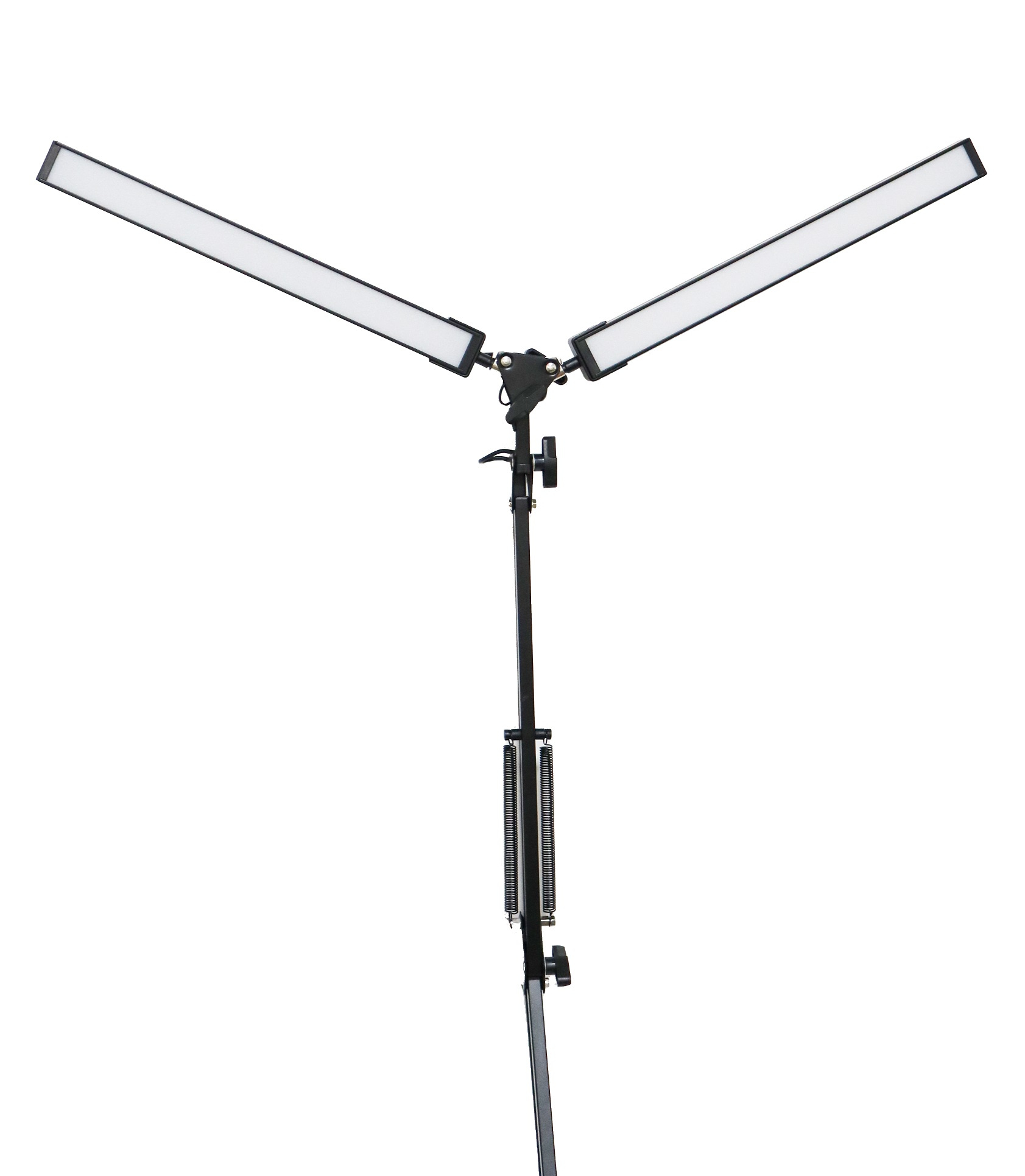 Lampa je vybavena dvěma samostatnými rameny, z nichž každé je zakončeno 35 cm dlouhým světelným panelem. Ramena jsou plně nastavitelná díky sedmi kloubovým spojům, což umožňuje dokonalé nasměrování světla podle aktuálních potřeb – ať už pracujete, tvoříte, nebo čtete.