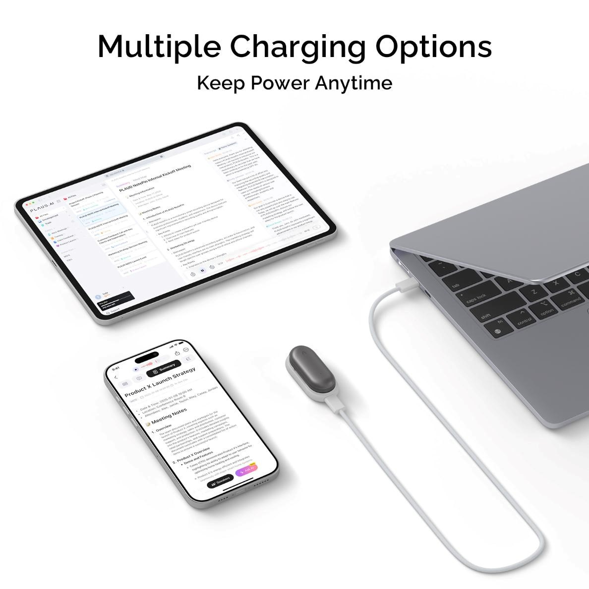 Sada pre Plaud Note Pin, obsahujúca náhradný nabíjací kábel s USB-C konektorom a nabíjací dok. Kompatibilný iba s modelom Plaud Note Pin.