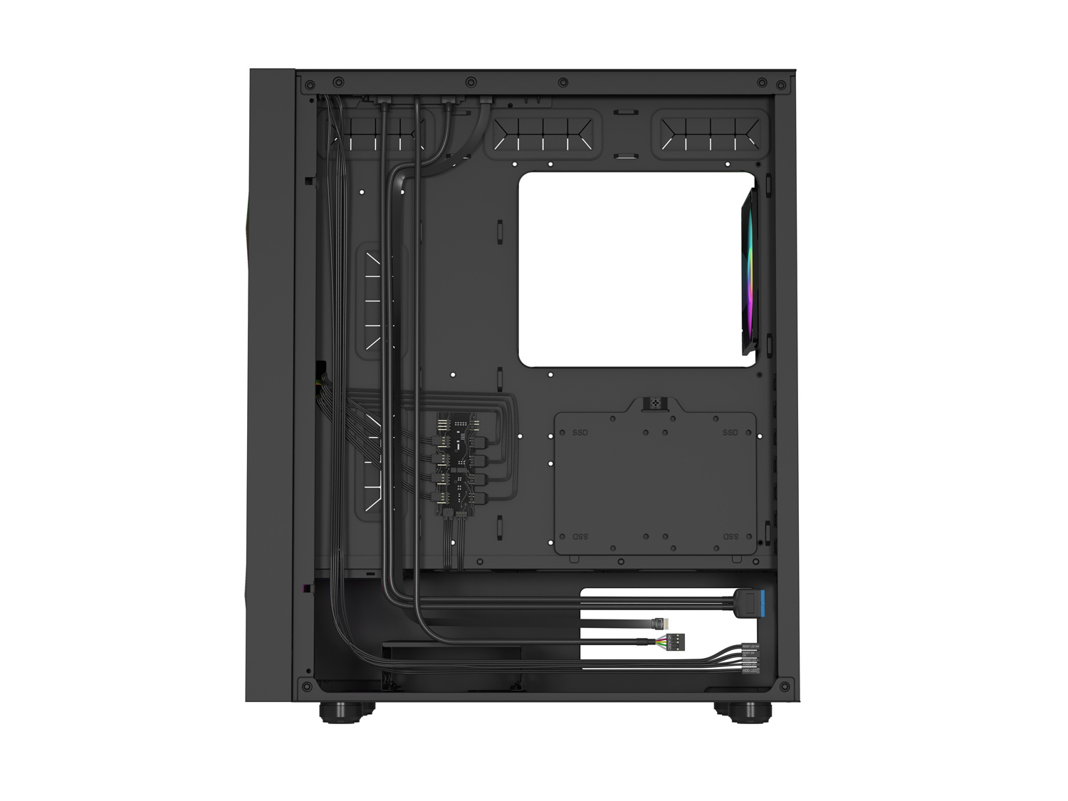 Až 4 ventilátory GENESIS Oxal 120 ARGB, které nabízejí nejen vysoký výkon, ale také možnost ovládání pomocí základní desky. Kromě originálního designu zajistí také ticho a optimální teploty i v těch nejteplejších dnech. Až 3 z nich (čerpající vzduch dovnitř) najdete vpředu, zatímco zbývající jeden (výfukový) vzadu. Díky této konfiguraci se můžete spolehnout na pozitivní tlak uvnitř skříně, který v kombinaci s plnou filtrací ještě lépe chrání před prachem. Nestačí vám to? Další 2 prostory na horní a spodní straně skříně vám umožní snadno rozšířit jednotku podle vašich představ (včetně montáže až 3 140mm ventilátorů na přední straně).
