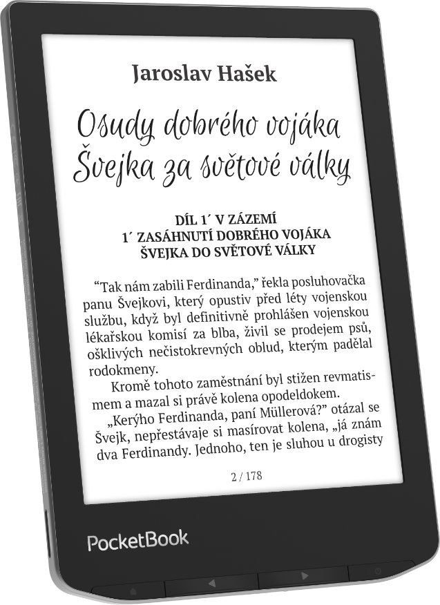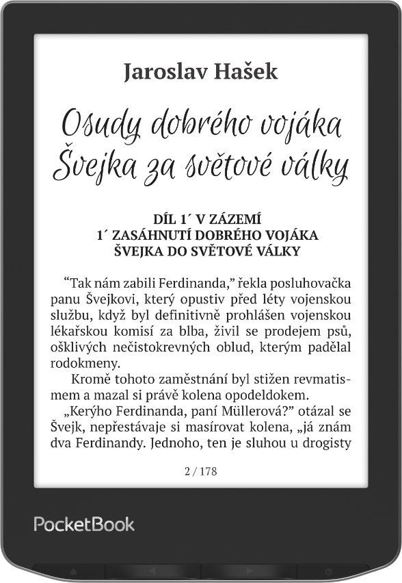 PocketBook Verse je kompaktné zariadenie, ktoré váži iba 182 g a je dokonalou kombináciou mechanických ovládacích tlačidiel a dotykovej obrazovky