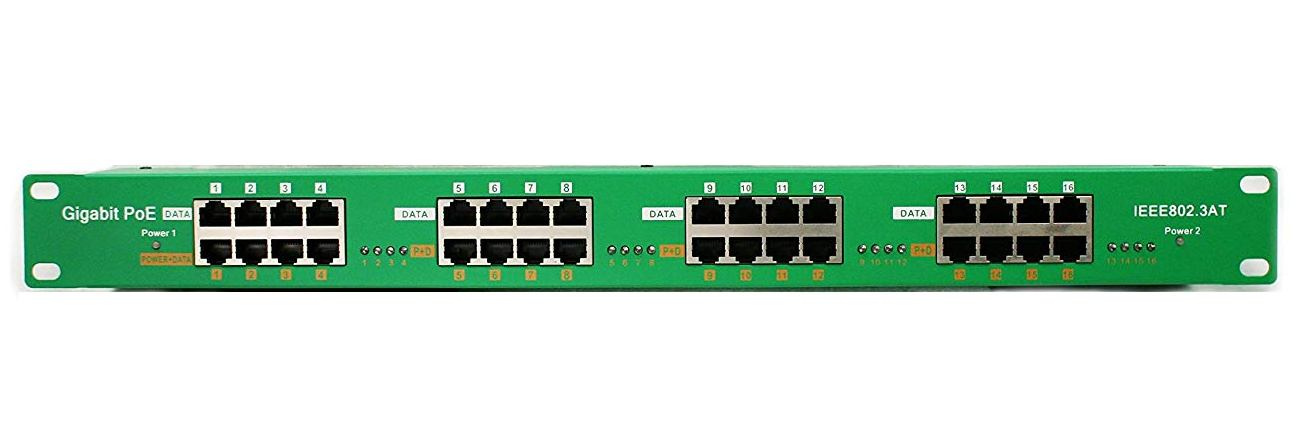 Rozhraní: 16x stíněný RJ45 konektor pro připojení do LAN (Data) 16x stíněný RJ45 konektor pro sloučený výstup (Data+Napájení)