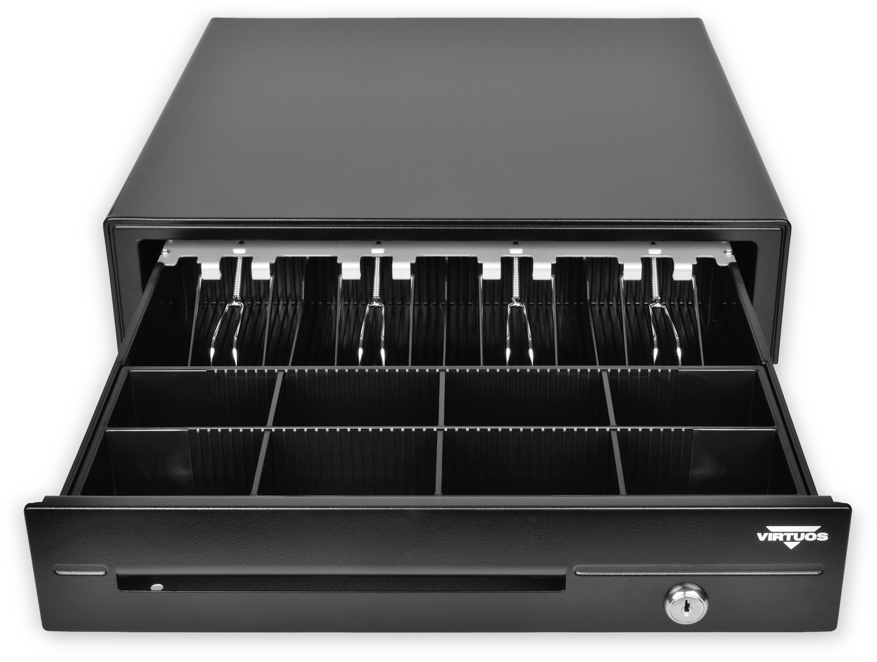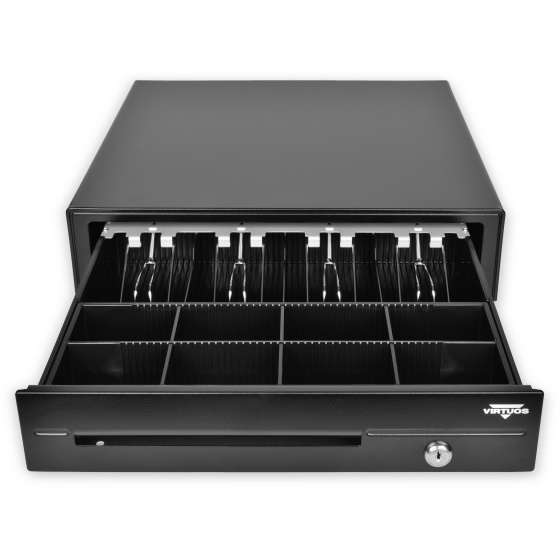 Pokladničná zásuvka C420D - s káblom, kovové držiaky, 9-24V, čierna