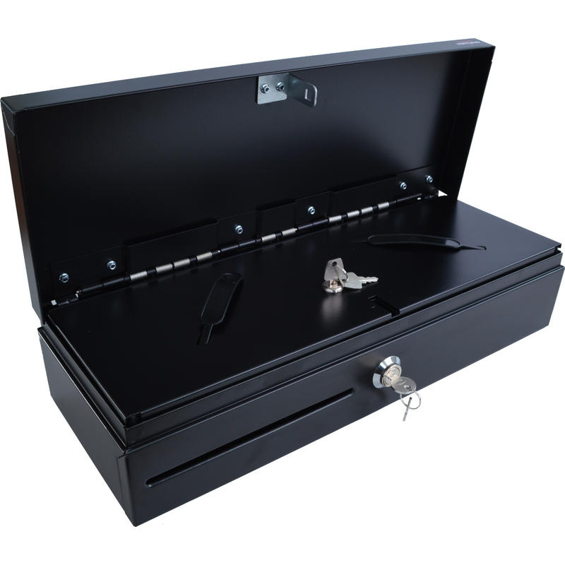 Pokladničná zásuvka flip-top FT-460C - s káblom, so zamykateľným krytom zakladača, 9-24V, čierna