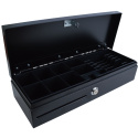 Pokladničná zásuvka C425C - s káblom, kovové držiaky, 9-24V, čierna