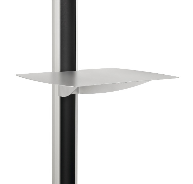 Přídavná polička ke stropním držákům s tyčemi PUC25xx nebo podlahové stojany s tyčemi PUC27xx. Poličku lze uchytit v libovolném místě po celé délce tyče a polohu uchycení lze posléze měnit. Pro montáž není třeba vrtat žádné otvory, upevňuje se do montážního kanálku, který vede po celé délce tyče.