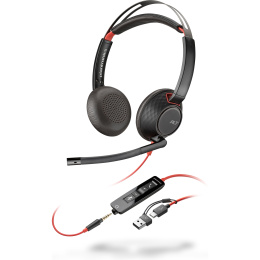 Stereofónna náhlavná súprava Poly Blackwire 5220 USB-C + 3,5 mm konektor + adaptér USB-C/A