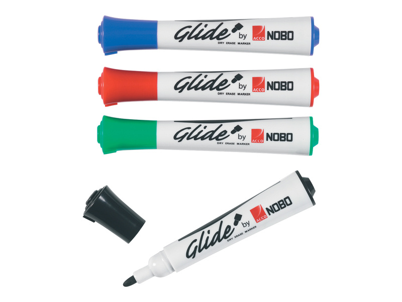 - Vhodné pro všechny typy bílých tabulí stíratelných za sucha - Velmi syté barvy - Kulatý hrot - Šíře linie 3 mm - V balení 4 kusy - Pro dokonale setřený povrch doporučujeme používat čisticí roztok určený pro tyto účely a pravidelně měnit stírací vložku stěrky