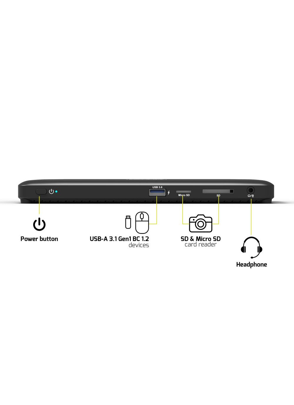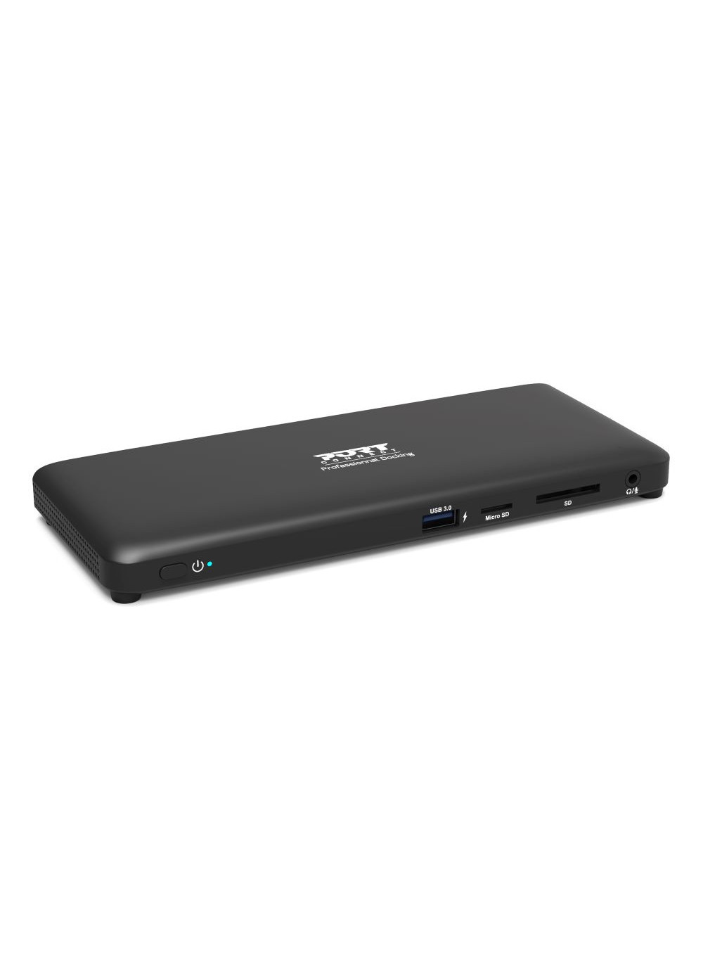 PORT CONNECT Dokovací stanice pro kanceláře má plno užitečných funkcí: Dokovací stanice USB-C pro rozšíření konektivity notebooku Dvě možnosti zobrazení obrazovky: 2 další obrazovky v kvalitě až 4K, nebo 3 další obrazovky v kvalitě až 1080p (bez obrazovky notebooku) Poskytuje distribuci energie až 100W Připojte až 11 periferií: 2x DisplayPortTM, 1x HDMI, 1x Ethernet, 4x USB-A 3.1 Gen 1 (vč. 1 BC 1.2), 1x Combo Jack 3,5 mm, Micro SD a čtečka SD karet Kompatibilní s USB-C PC a Mac®* Inteligentní řízení spotřeby a tlačítko ON/OFF umožňující optimalizaci spotřeby energie 1 m dlouhý kabel pro optimální konektivitu LED indikátor pro upozornění na zapnutí Integrovaný standardní bezpečnostní slot pro zabezpečení zařízení Funkce PXE Boot a Wake On LAN Mac Address Path Through