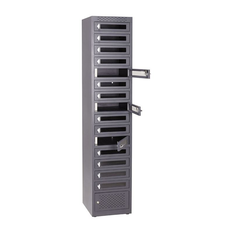 *Kapacita až 15 tabletů *15 samostatných kaslíků, každý s vlastní elektrickou zásuvkou *Celokovové provedení *Skleněná dvířka jednotlivých oddílů *Uzamykání integrovaným zámkem na klíč *Zabezpečená technická zóna s integrovaným jističem *Volitelná nucená ventilace (volitelné příslušenství)