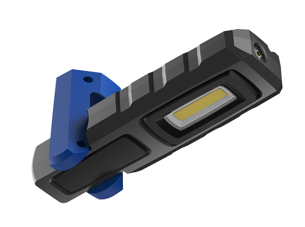 • Praktické možnosti uchycení: Baterka je vybavena háčkem na horní části pro snadné zavěšení, magnetem na spodní straně pro připevnění k kovovým povrchům a ohebným držákem, který umožňuje postavení baterky do požadovaného úhlu.