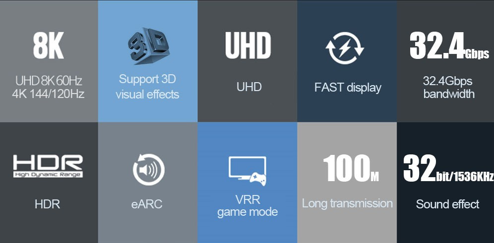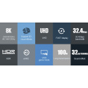- 8K (7680x4320) při 60Hz a 24 bitová barevná hloubka