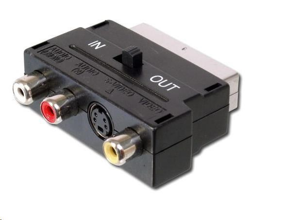 PremiumCord Adapter SCART-3x cinch + S-video s prepínačom IN/OUT