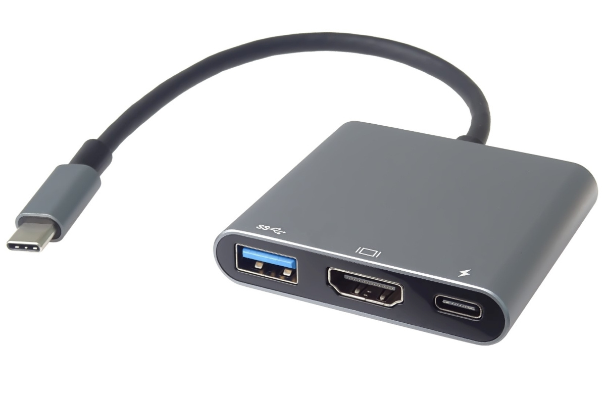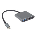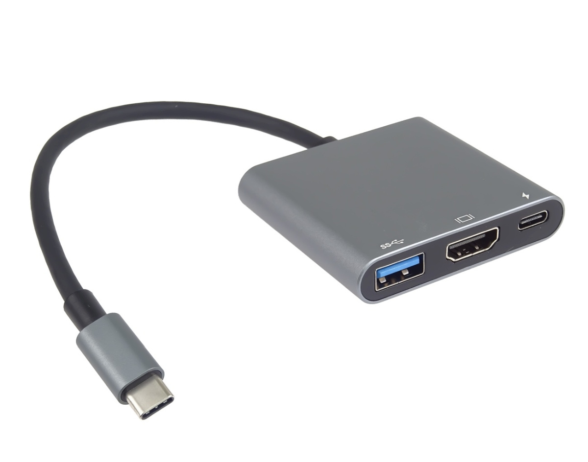 *Rozlišení obrazu HDMI: 4K@30Hz a FULL HD 1080p *Vstupní konektor: USB-C male kompatibilní s thunderbolt3 *Výstupní konektor: HDMI female + USB3.0 female + PD (power delivery) *PD Konektor USB-C pro nabíjení 20V až 5A (100W napájení, nabíjení) *USB3.0 konektor pro připojení flash paměti nebo jiného USB zařízení nebo pro napájení přes USB, rychlost až 5Gbps *Adaptér přenáší digitální obrazu i zvuk *Plug and play. *Typ C konektor s možností zapojení v jakémkoliv směru *Barva: stříbrná a šedá *Kompaktní zastříknuté odolné pouzdro *Balení v sáčku s EAN kódem a popisem