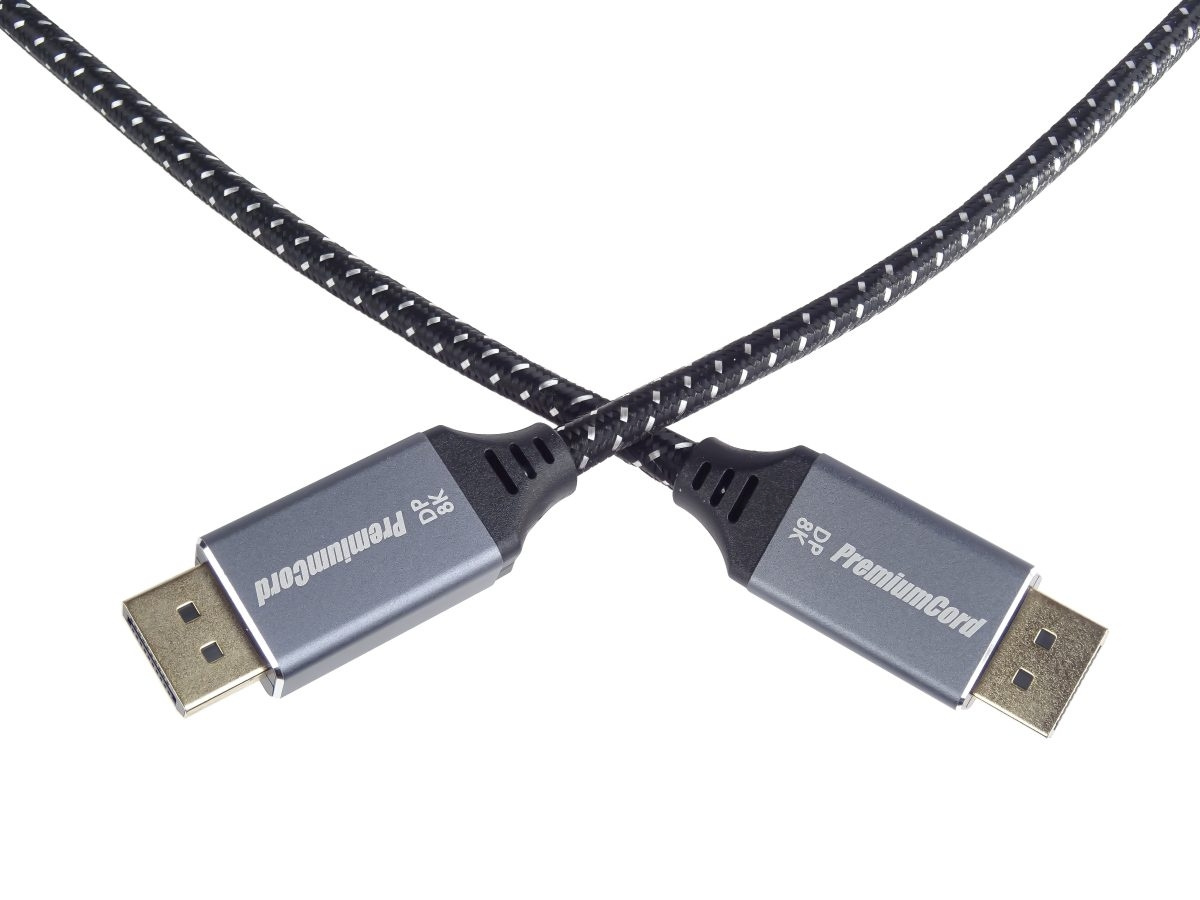 PremiumCord DisplayPort 1.4 prípojný kábel, kovové a pozlátené konektory, 1m