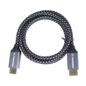 - Maximální rozlišení: - 8K (7680 x 4320) při 60 Hz a 24bitové barevné hloubce - 5K (5120x2880) při 60 Hz a 30bitové barevné hloubce - 4K (3840x2160) při 120 Hz a 24bitové barevné hloubce - 1080P (Full HD) - Podporuje HDCP 2.2 - DisplayPort 1.4 - Maximální přenos dat: 32,4 Gb/s - Podporovaná barevná hloubka: (30 bitů), True Color (24 bitů) - Konektory: DisplayPort (20pin) samec <=> DisplayPort (20pin) samec - 20žilový kabel, dvojité stínění, měděný vodič AWG28 - Pozlacené konektory - Kovové hliníkové krytky konektorů - Kabel s černobílým bavlněným textilním opletením - Stříbrná barva - Baleno v PVC sáčku s EAN kódem a popisem - Délka kabelu: 5 m