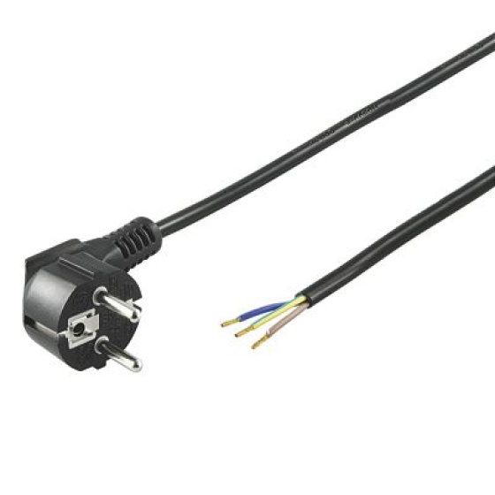 Parametry a specifikace: První konektor: CEE 7/7 zahnutá vidlice 230V UNISCHUKO Druhý konec: volné tři vodiče Průřez vodiče: H05VV-F3G 3x0,75mm2 Izolace: PVC Proudové zatížení: max 10A Napětí max.: 250V Barevné provedení: Černé Délka kabelu: 2m
